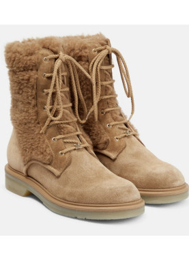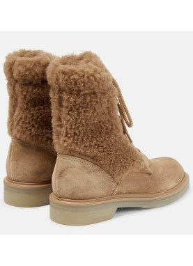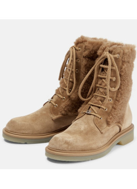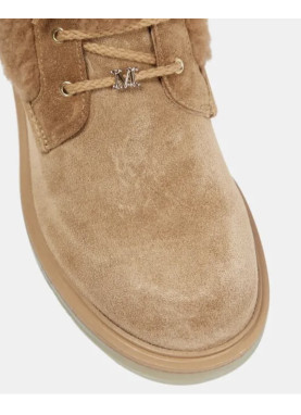 Buty zamszowe , sznurowany design z okrągłymi noskami, gumową podeszwą , pluszowe wykończenia z wełny wielbłàdziej w odcieniu brązu camel.