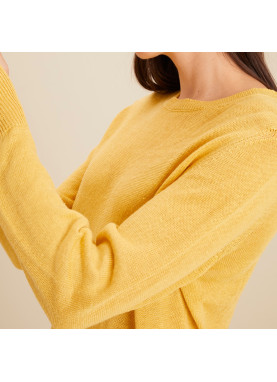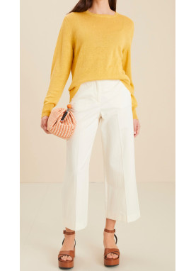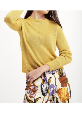 Prosty sweter z czystej przędzy lnianej, z okrągłym dekoltem, długimi rękawami i ściągaczem.